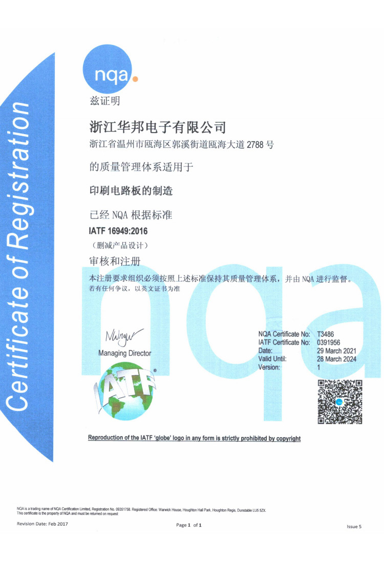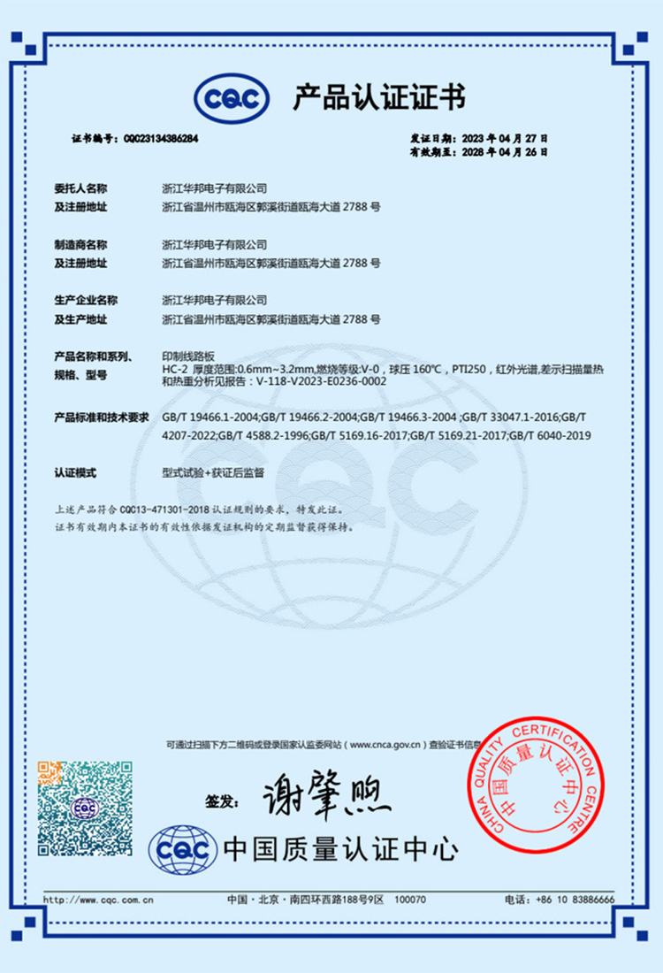 浙江華邦電子有限公司位于溫州市甌海經(jīng)濟(jì)開(kāi)發(fā)區(qū)C園區(qū),成立于2001年2月,是一家專(zhuān)門(mén)從事單、雙面及多層印制線路板的生產(chǎn)企業(yè)。榮獲美國(guó)UL安全認(rèn)證、IATF16949證書(shū)、科技型中小企業(yè)證書(shū)、新型技術(shù)企業(yè)證書(shū)(有效期至2024年12月16日)、CQC證書(shū)等。